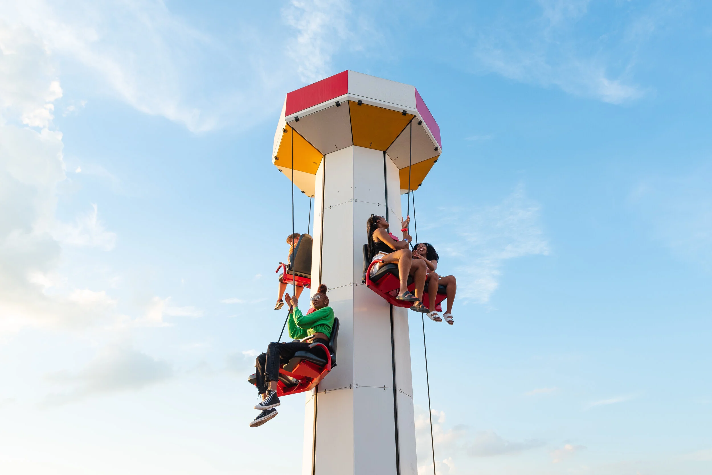 Think carnival midway… elevated. Here's what you’ll find up top: