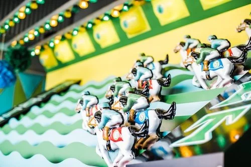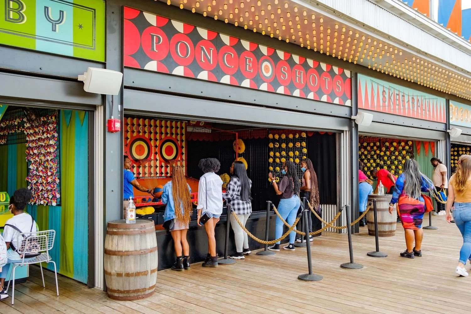 Our Coney Island style boardwalk includes mini golf, horse derby race, basketball, skee-ball, and goblet toss.